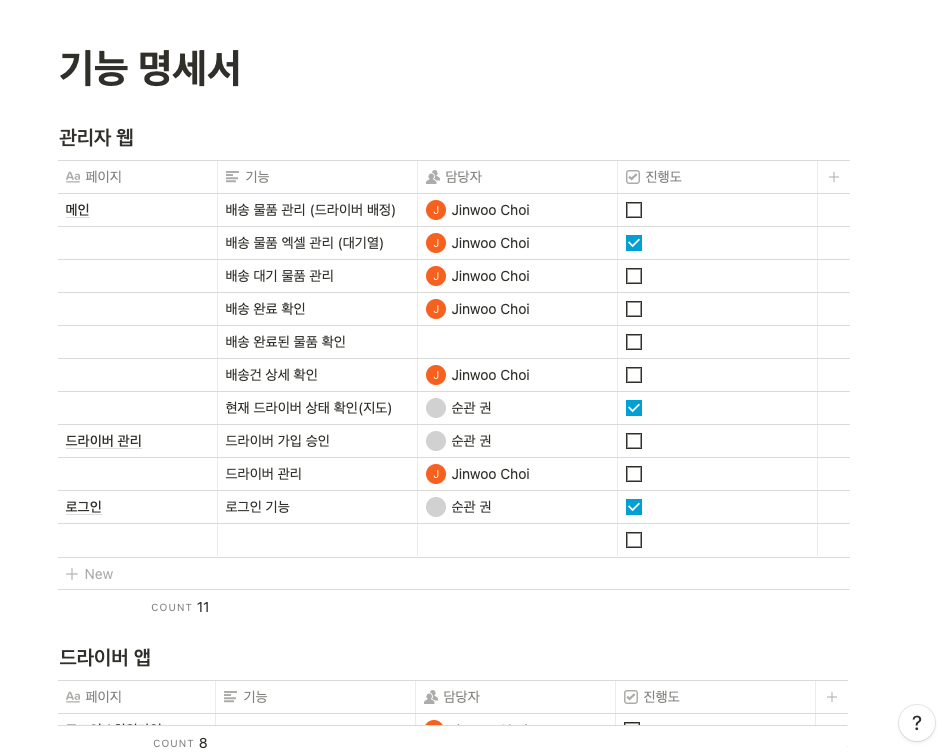 노션을 통해 기능을 명세하고 개발을 시작했습니다.