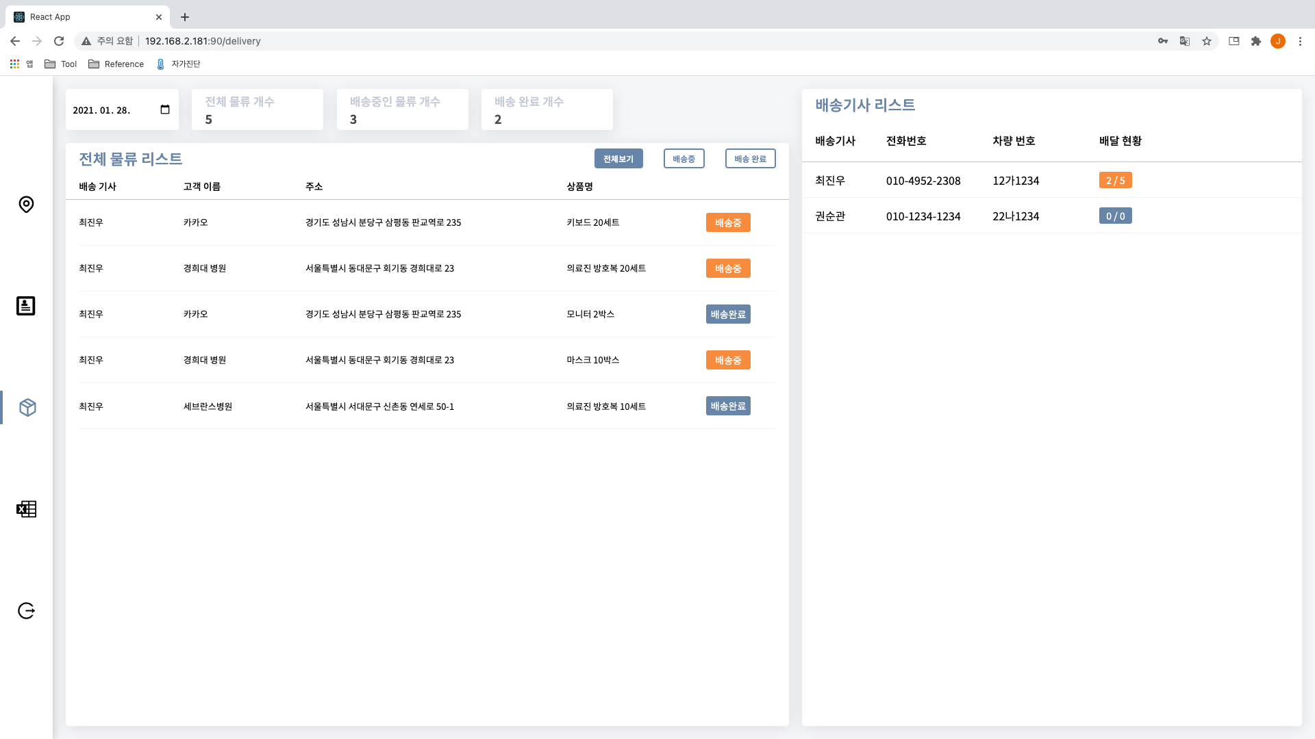 개발한 프로젝트는 물류 관리 서비스입니다