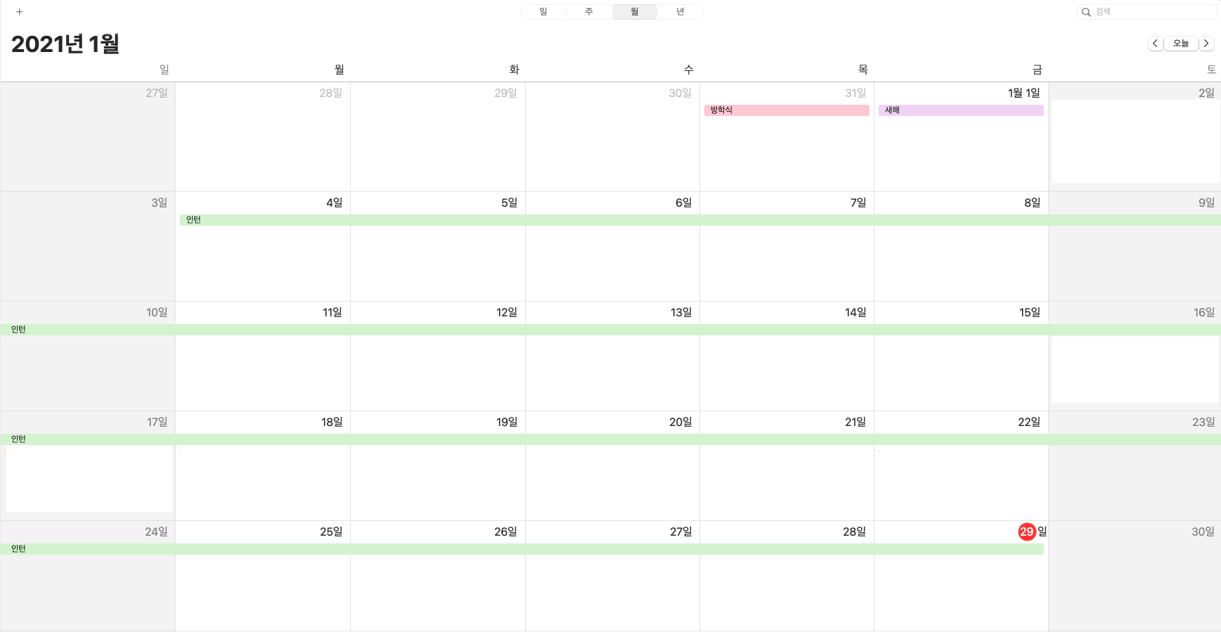 2021.01.04 ~ 2021.01.29까지 인턴쉽을 다녀왔습니다. (오늘까지)