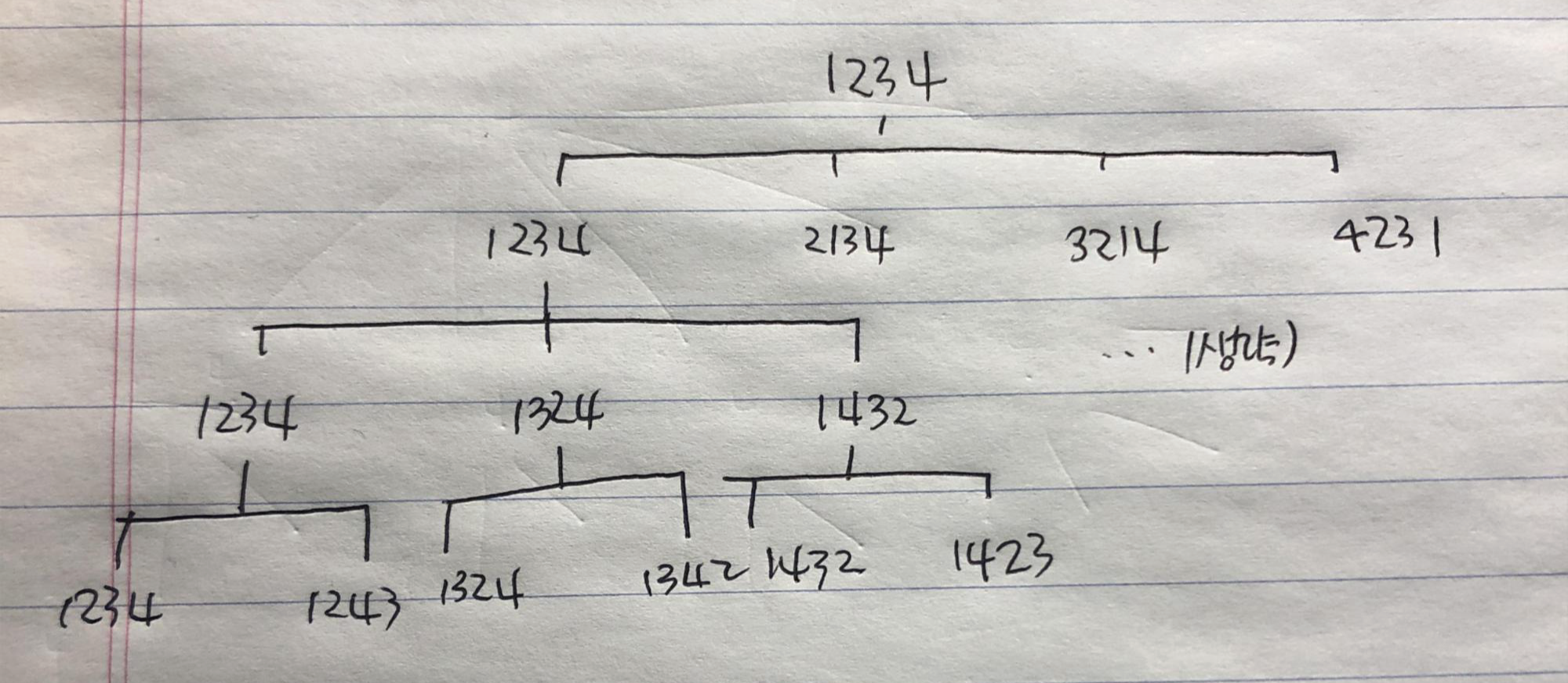 순열을 구하는 코드는 재귀함수를 이용할 수 있습니다.