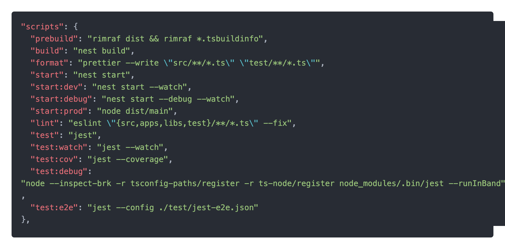 nestJS의 기본 스크립트를 변경해주었습니다. 변경된 점은 prebuild 입니다.