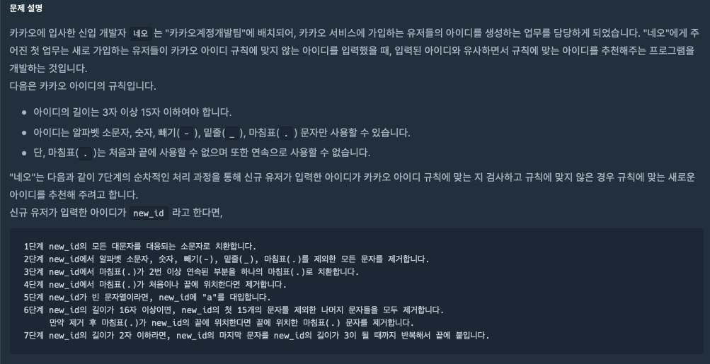 1단계new_id.lower() 메소드로 모든 알파벳을 소문자로 변경합니다.