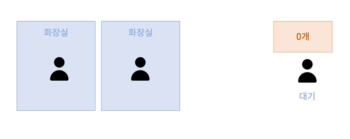 한 명이 들어오면 화장실의 빈칸(세마포어 변수)을 하나 줄여줍니다.