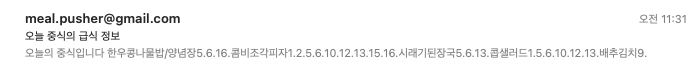 가장 비용 없이 운영할 수 있는 방법을 생각한게 Github Actions의 스케줄을 통해 특정 시간에 급식정보를 메일로 알려주는 방식이었습니다.