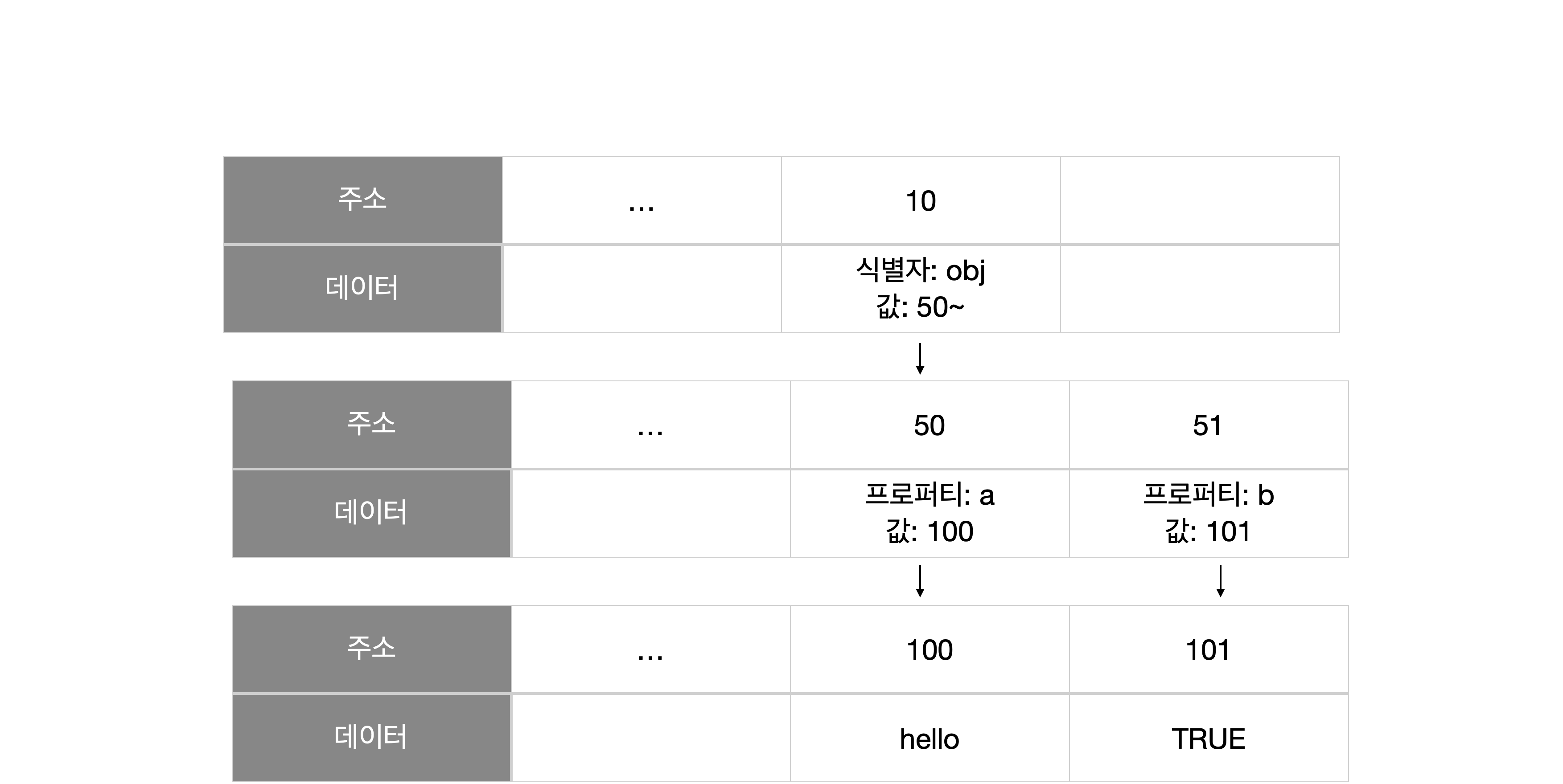 왜 이런 구조일까 의문이 들 수 있습니다. a가 hello를 가지고 있으면 안될까? 라고 생각이 든다면 정상입니다. 자바스크립트는 변수가 바로 값을 가지지 않습니다. 값의 주소를 가지고 있는데 이 이유를 이제 알아보도롤 하겠습니다.